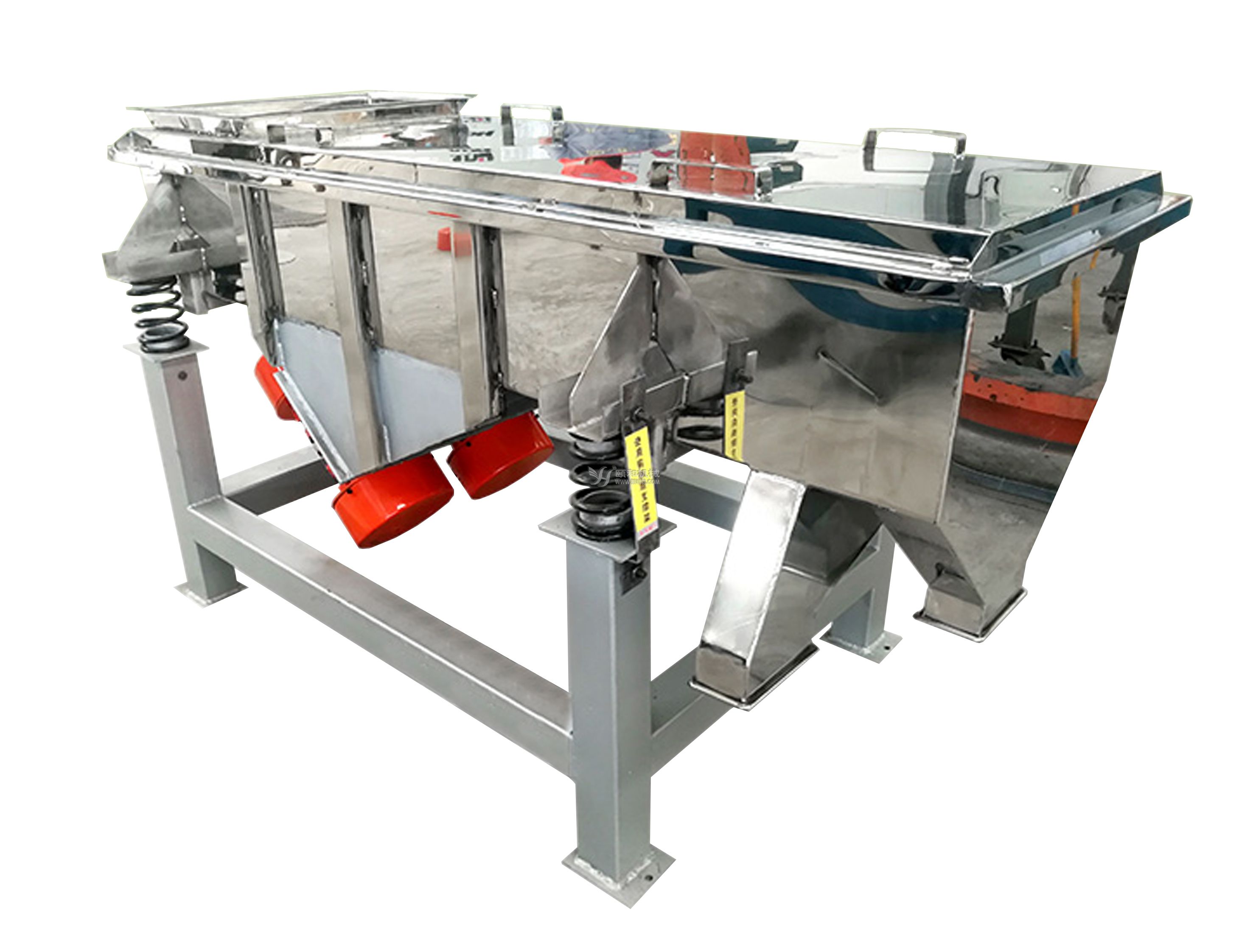 多層粉料直線電機振動是利用振動電機激振的原理,使物料在篩面上被拋起跳躍式向前作直線運動,以合理